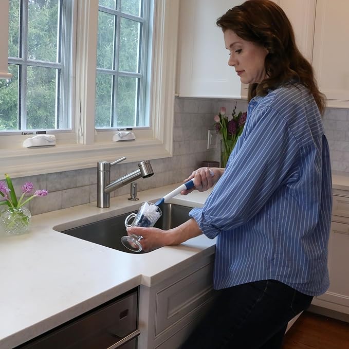- Extra Scrubbing Power: The extra-long handle allows you to reach deep inside pitches, vases, carafes, and tall bottles so no spot gets missed, while the flat head design easily cleans corners