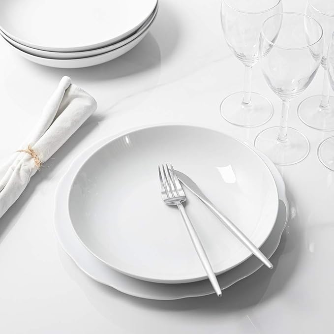 - Versatile for Mixing and Matching Across Sets: Expand your white dinner bowls set of 12 with this set of 6. It pairs with square white dinner bowls for eating, a Thanksgiving gravy boat, or Christmas china dinnerware sets for gatherings. These white serving bowls are versatile as salad serving bowl options or salad bowls large serving, with a wide and shallow design for eating, crafted from durable porcelain bowls for kitchen.