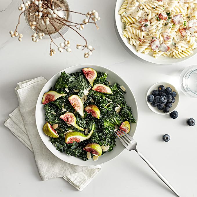 - Stackable & Space-Saving Design: This set of 4 bowls is expertly crafted to stack neatly, saving valuable storage space while keeping your kitchen organized. Perfect as white large soup bowls, a melamine pasta bowl set, or elegant Italian pasta bowls, they blend functionality with style. Ideal for serving as stoneware pasta bowls or deep soup bowls, their generous size even works as a big large serving bowl, ensuring versatility for every meal.