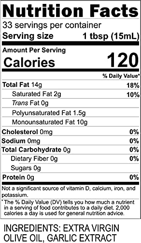 - For Garlic lovers! Delightful to drizzle on salads, tomatoes, sautéed veggies, potatoes, fish out of the pan, and much more!