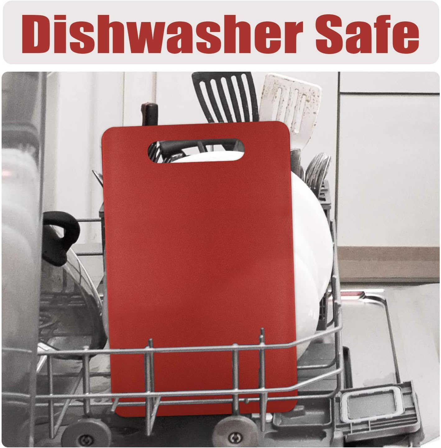 Fotouzy Plastic Utility Cutting Board with Handles, Food Safe PP Material, BPA Free, Dishwasher Safe, Thick Chopping Board, Large Size, Easy Grip Handle, for Kitchen (Red),15.5 x 10"