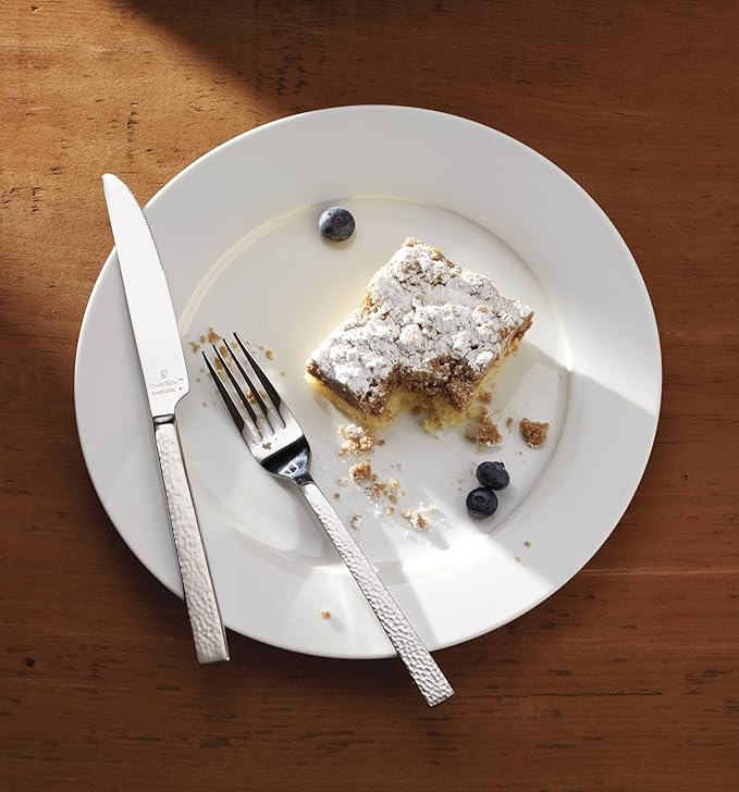- ARTISAN DESIGN: Heft the craft of hand-made to your home. This silverware set's hammered notches dimple the handle so your table can rediscover that old-time feel of artisanal texture. Hold what’s heavy. Hold Chef’s Table Hammered.
