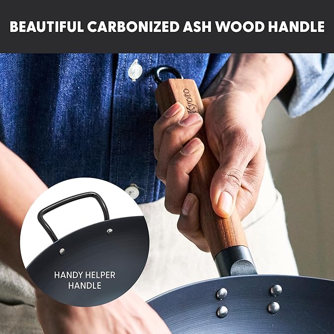 - PRE-SEASONED AND READY TO GO: This wok is pre-seasoned, no need to prep—just start cooking right away, hassle-free.
