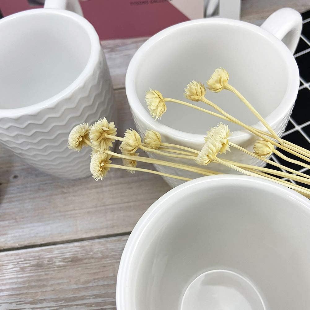 - COMFORTABLE TO HOLD: There are plenty of space between the handle and the coffee mug makes it easy to hold. The pattern design also makes the white mugs comfortable to the touch. You can have coffee, tea, milk, and cocoa with this stylish mug set.