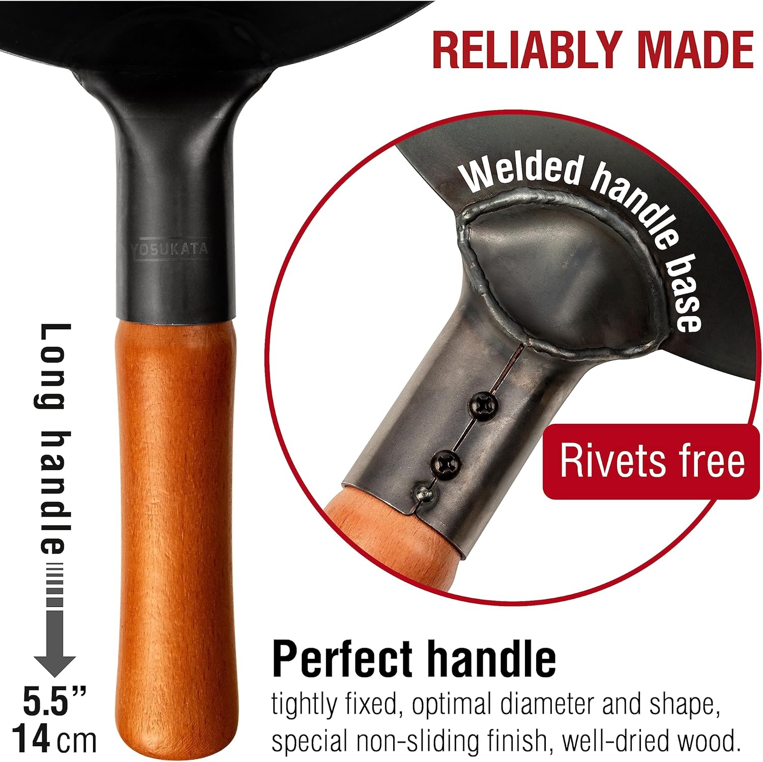 - GENUINE TASTE: Bring authentic wok flavor to your kitchen or outdoor cooking with the YOSUKATA 11.8” flat-bottom carbon steel wok. Designed to lock in juices and flavors, this deep wok pan is ideal for preparing Chinese, Japanese, Thai, and other Asian dishes — the perfect fried rice pan for home or professional use.