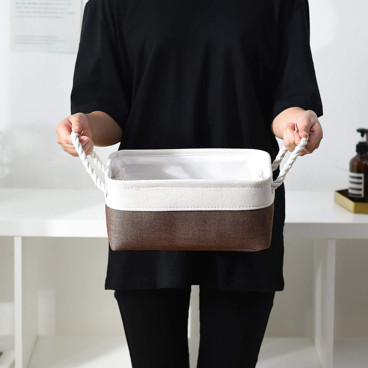 - Lightweight & Soft: Small baskets are lightweight, sturdy and easy for place on the floor to grab their favorite . Easy transport with rope handles, lightweight for carrying and organizing.Structure can allow you put more heavy stuffs. Modern and stylish design perfect for any room decor, small rectangular baskets are so universal to work anywhere you are looking to get organized