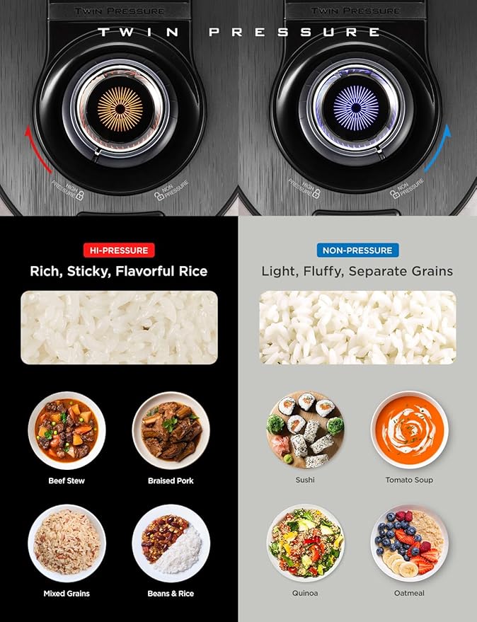 - 14 Versatile Modes: Equipped with a multi-functional design that offers 14 operating modes including white (glutinous) rice, scorched rice, baby food, and high pressure/non-pressure steam