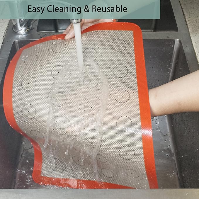 - 🍕【EASY CLEAN-UP】 The smooth surface of half sheet silicone baking mats make it so easy to sperate your baking food from the mat and pan. Enjoy a truly non-stick surface that makes cleaning effortless. Even burnt sugar and fat easily rinse off with warm soapy water or can be placed in the dishwasher.