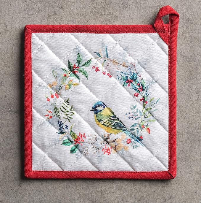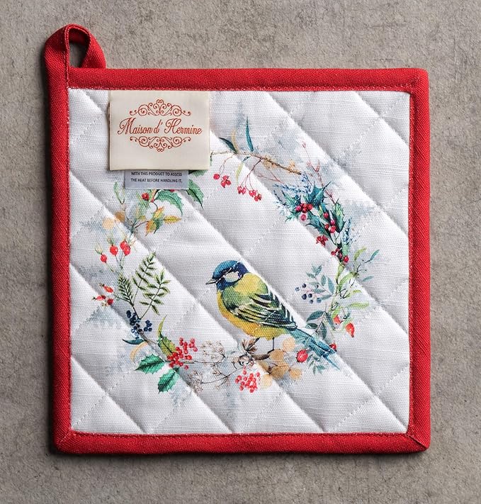 Maison d' Hermine Pot Holders 100% Cotton Heat Resistant Potholders 8" x 8" Hot Pads with Loop BBQ, Cooking, Baking, Grilling, Kitchen, Handling Hot Pans (Pack of 1, Morzine)