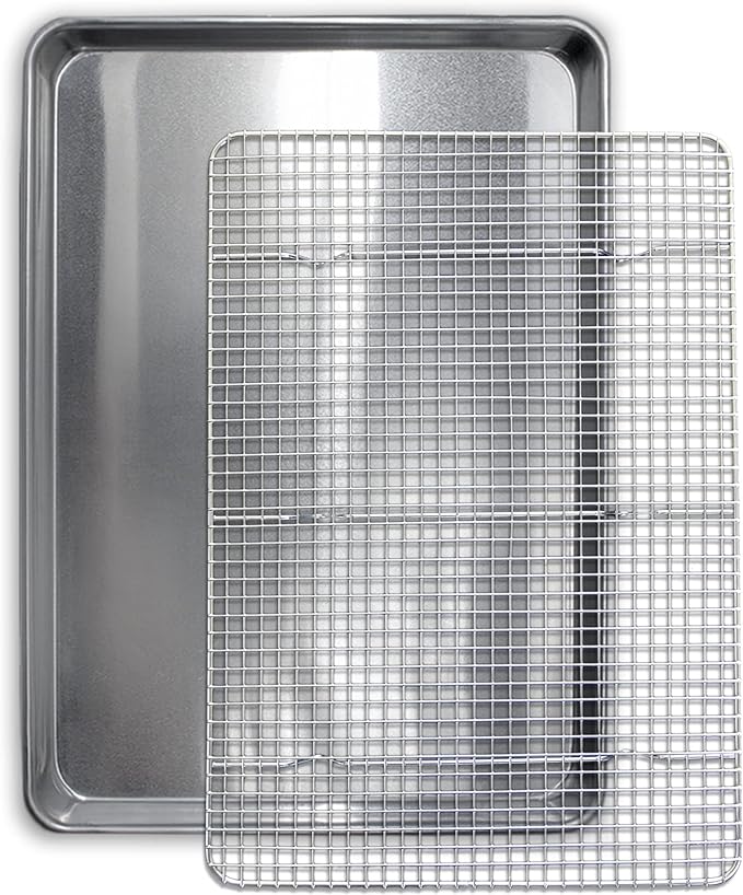 Commercial Quality Cookie Sheet and Rack - Aluminum Half Sheet Baking Pan and Stainless Steel Cooling Rack Set 13x18 Rust & Warp Resistant, Heavy Duty