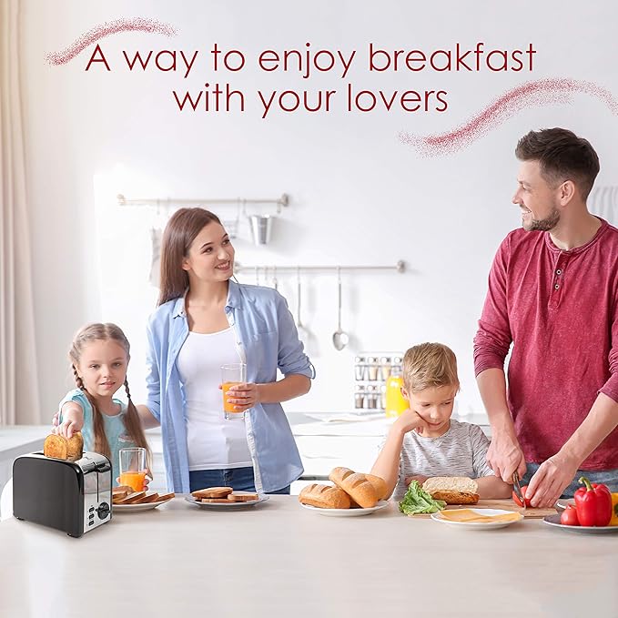 - Clear & Compact Toaster Design: Our stainless steel electric toaster has a clean and smooth design that can fit into your kitchen. 1.5-inch wide slots allow you to brown or defrost bagels, sliced bread, frozen waffles, and pastries.