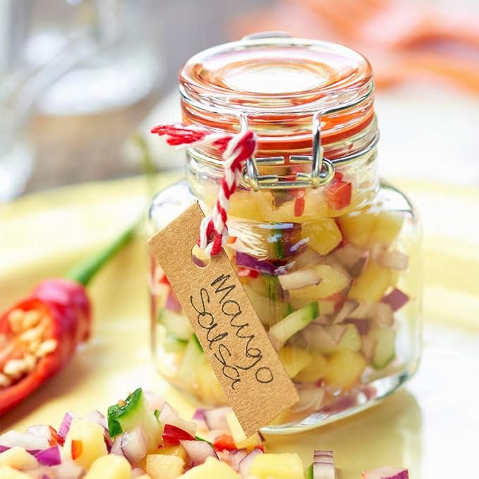 - Great Spice Jars - Clear square glass jars are prefect size to be used as glass spice jars. Airtight Glass mini mason jar storage containers help you adding your personal touch to your homemade spice jar set, Herb jars, seasoning jars, herb storage containers, bath salt jars, flip top jar, condiment jar, kitchen storage jars.