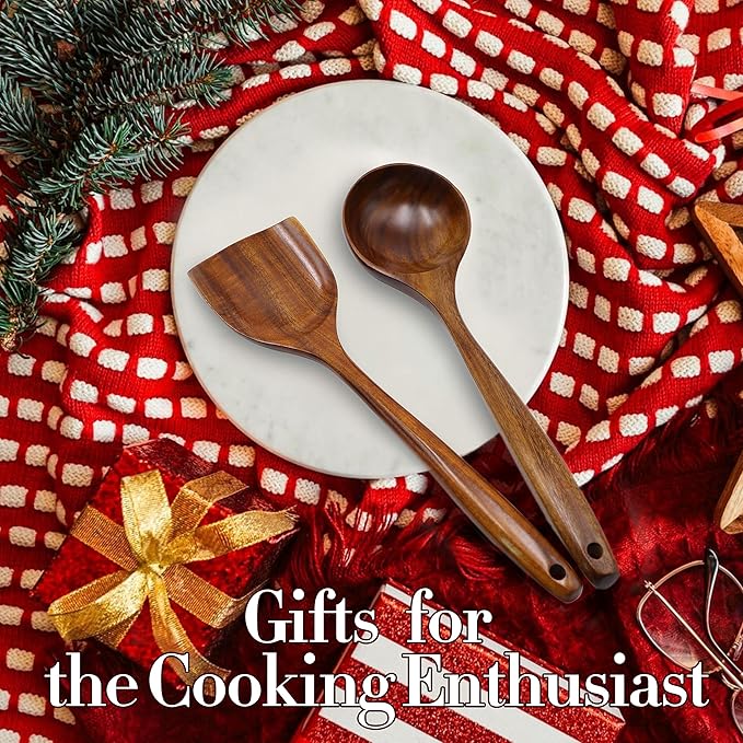 - [Ideal Kitchen Accessories]: Transform your kitchen into a heaven of culinary with our exquisite wooden cooking utensils.Crafted from natural wood and hand-polished to perfection, each piece is free of imperfections, feels as smooth as silk in your hand