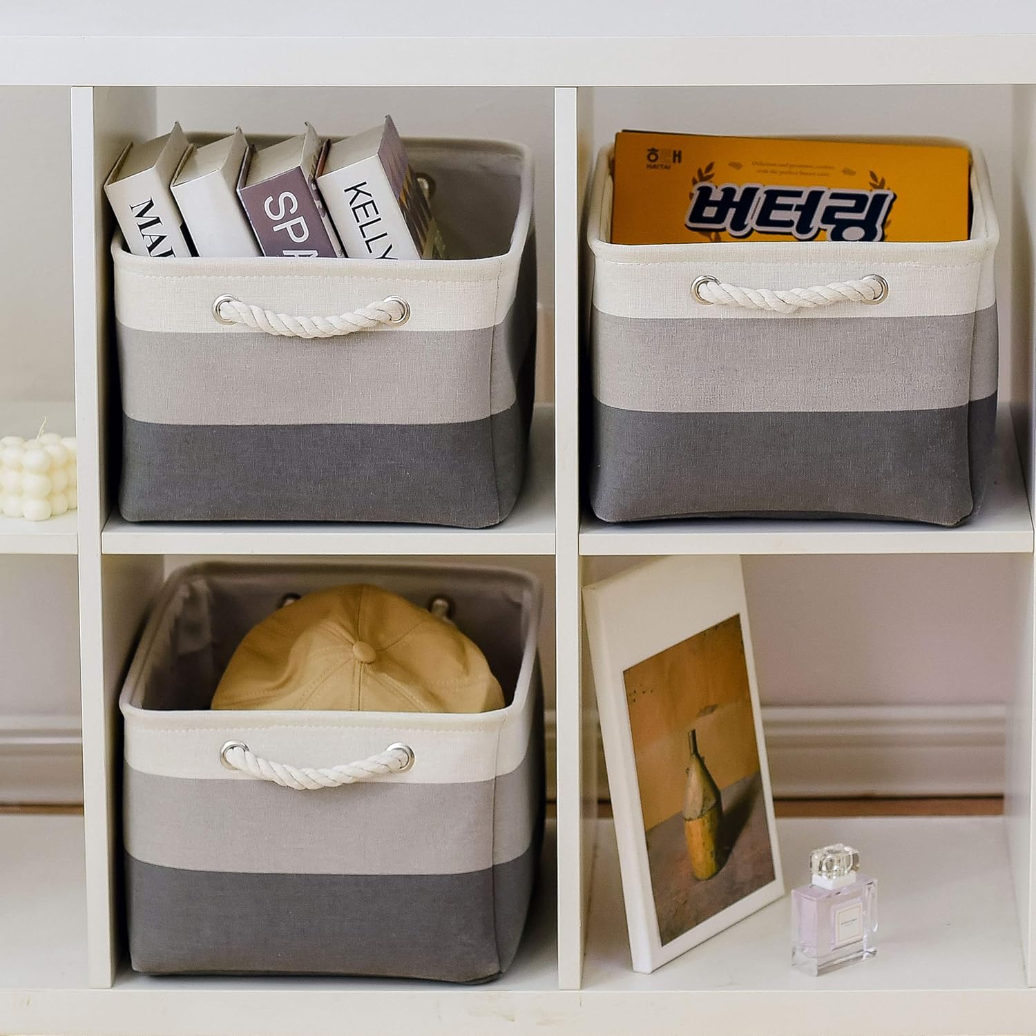 - Perfect Size: The storage baskets perfect for shelves closet. Larger size can store more items. Easy to add tags for distinguishing. Great for using in bedroom, study room, rest room, office, etc