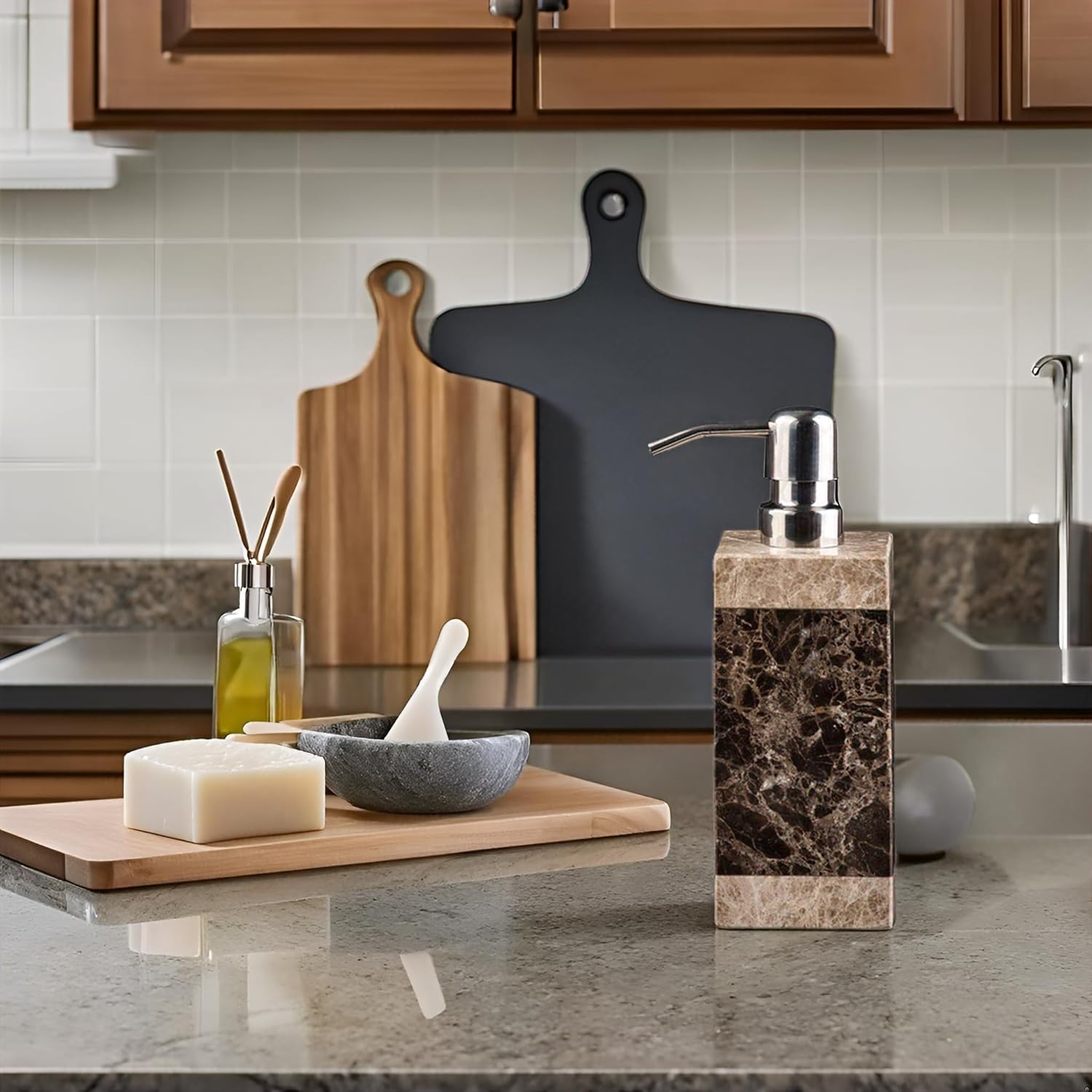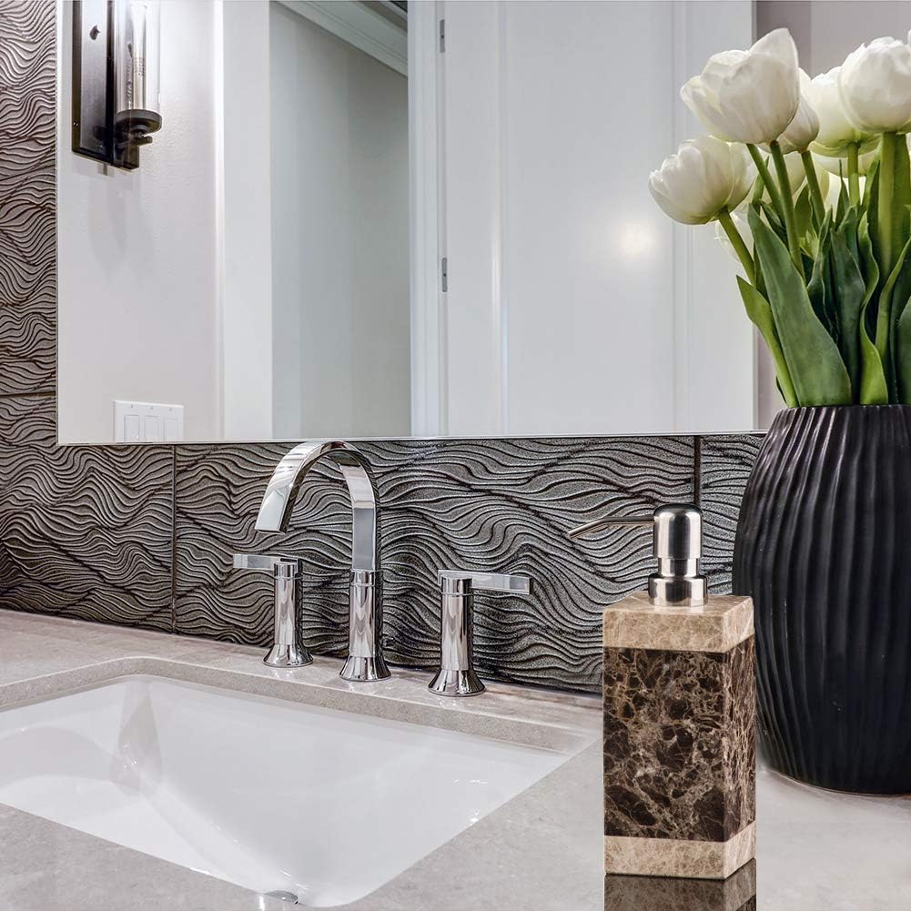 Hand Liquid&Lotion Soap Dispenser Pump Bottle Natural Marble for Kitchen Bathroom Countertop Laundry Room Holds Dish Soap Shampoo Laundry Liquid Shower Gel(Coffee Colour)
