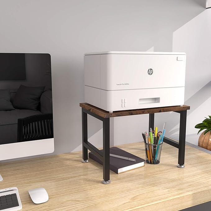 - 【 Vintage Charm & Adjustable Feet 】 The printer shelf features rustic and aesthetic wood grain which matches perfectly with the black matte paint. Four adjustable feet are included to keep the organizer stable and prevent scratch on tabletop.