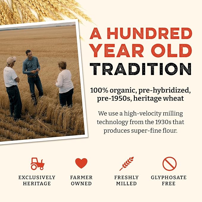 - From Scratch: Ideal for dedicated artisan bakers, this organic bread flour is versatile and premium. Made from organically-grown heritage white whole wheat flour, it ensures an elevated taste and nutrition you can trust and enjoy.