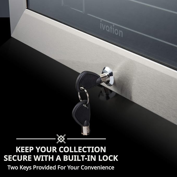 - UV-RESISTANT DOUBLE-PANED THERMOPANE GLASS - A double-paned glass door not only keeps the interior insulated, but also protects your collection from harmful UV light that can damage the tannins and overall flavor of your wine.