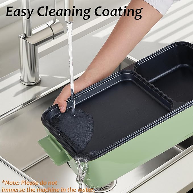 - 【Non-Stick Feature】This appliance has a healthy and Eco-friendly coating that contains no harmful chemicals even in high temperature. This coating offers superior food release, preventing food from sticking so that you can use less oil than uncoated cookware and easy to clean after use. Also, it produces less smoke than traditional BBQ. You can enjoy the hot pot and BBQ in a healthier way.