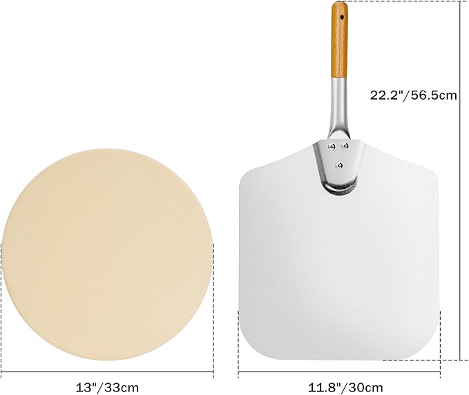 - 【Package include】Includes rotisserie ring, rotisserie kit(with 110v electric motor), 13" round cordierite stone, baking peel and 4 support chips.(Used for supporting your cooking grate)