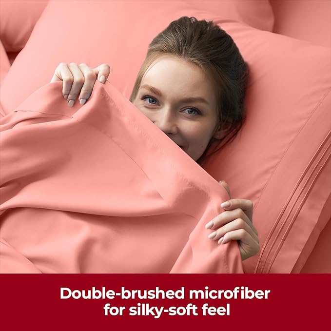 Mellanni Extra Deep California King Sheets - 4 PC Iconic Collection Bedding - Hotel Luxury, Ultra Soft, Cooling Bed Sheets - Wrinkle, Fade, Stain Resistant (Cal King, Coral)