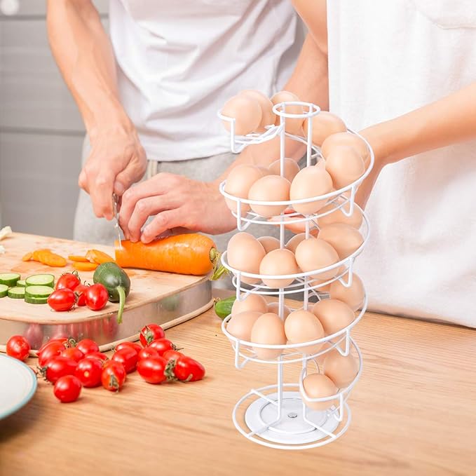 Toplife Spiral Design Metal Egg Skelter Dispenser Rack, Storage Display Rack, White