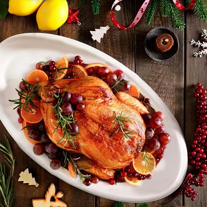 - Large Serving Platters: Measured 15.7 inches long 8.7 inches wide, this versatile serving plate provides impeccable service for everything from main courses to food, appetizers, desserts and more. Ideal for Thanksgiving, Christmas, entertaining, dinner, or party, family gatherings.