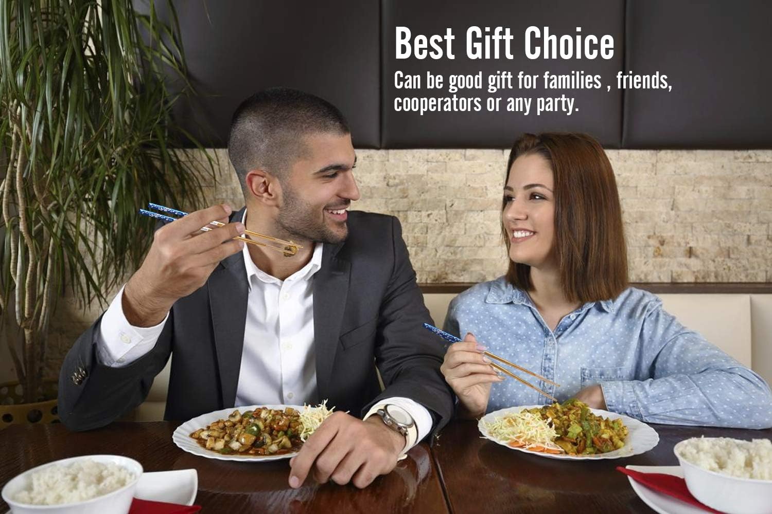 - ✿ 【Best Gift Choice】: The metal chopsticks are with beautiful leaf pattern and blue background on chopsticks end. The whole stainless steel chopsticks are titanium plated. The elegant looking and the gift box package make the stainless steel chopsticks very good presentation. Chopsticks mean good cooperation and best friendship. So they are nice gift to friends, lovers, families and cooperators. The reusable chopsticks use the longer and the love you present will last longer.