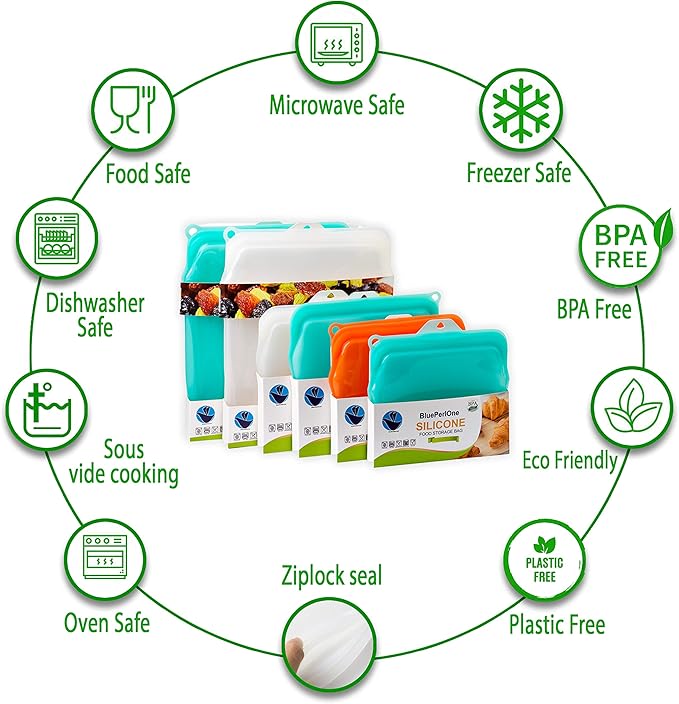 - πΌ Keep Your Kitchen, Refrigerator/ Freezer, Organized - Easy to rezip reusable silicone food storage bags. It is simple and quick. The simple sealing design makes meal preparation easy, allowing you to save time and make healthy choices.