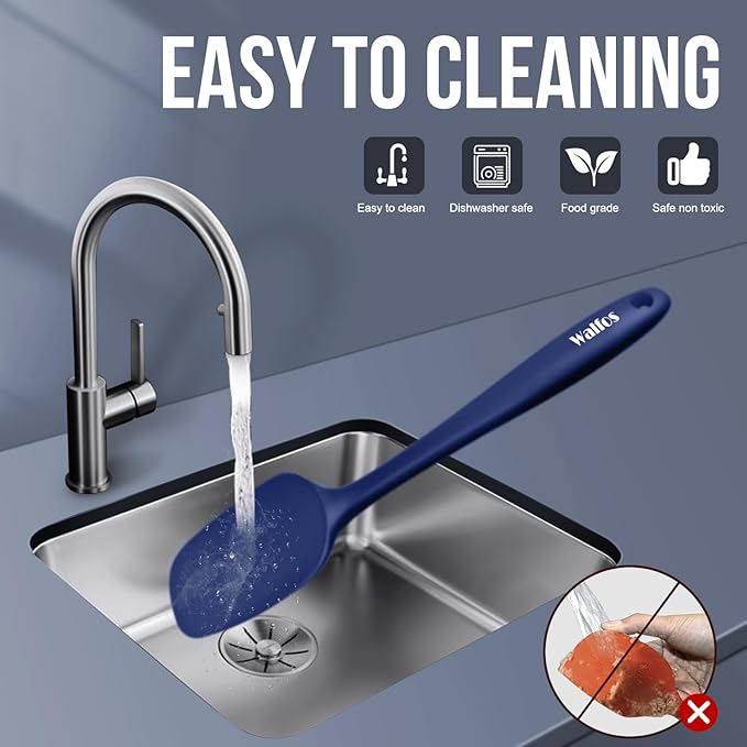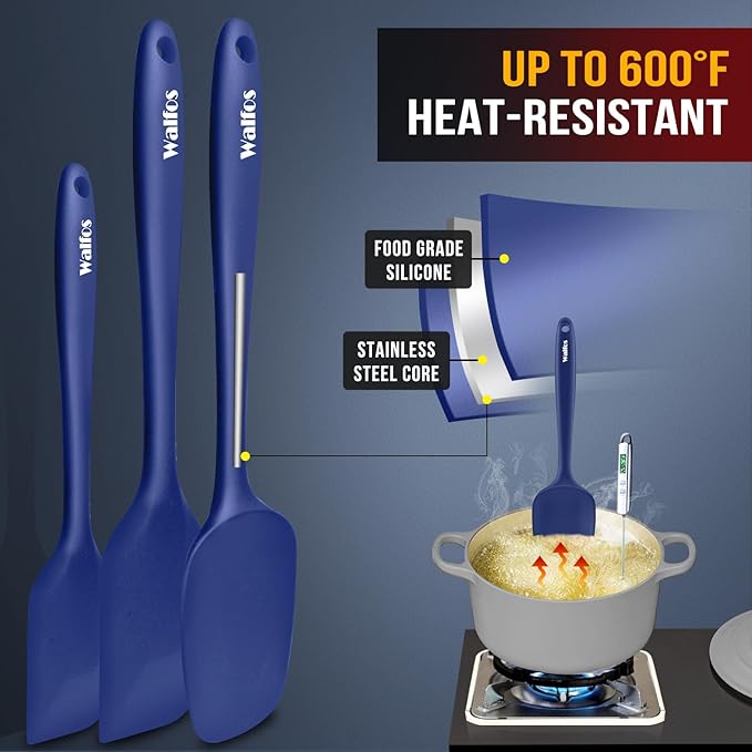 - 【Highly Heat Resistant, BPA Free!】Walfos spatulas are made of premium food grade silicone, BPA free, 600° heat resistant, non-stick surface. Perfect for cooking, baking, scraping, decorating or mixing, safe and good for your health and protect your cookware from scratching.
