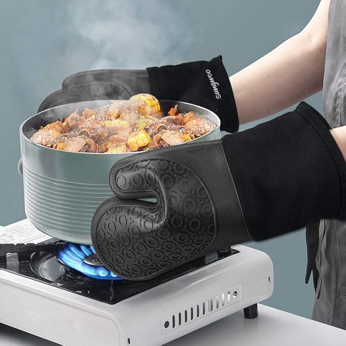 - Multiple Choices: Sungwoo Extra Long silicone oven mitts can be used as regular pot holders, dishwashing gloves. Also the oven mitts are ideal kitchen gift for baker, cooker.