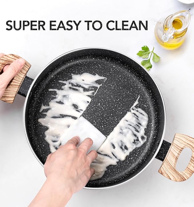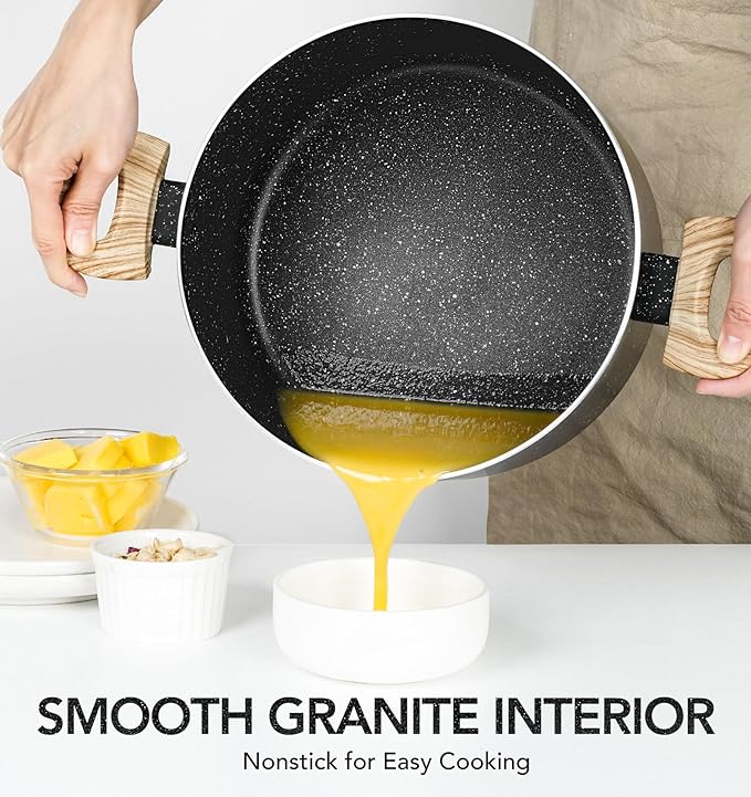 - Comfortable and Practical Design - Our nonstick pot features ergonomically designed bakelite handles that provide a comfortable grip and reduce the risk of burns. The clear glass lid allows you to monitor your cooking without lifting the lid, preserving heat and flavor. Upgrade your kitchen arsenal and elevate your cooking experience with our outstanding stock pot!
