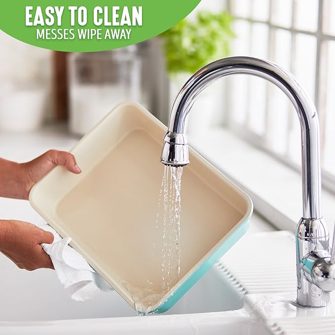 GreenLife Bakeware Healthy Ceramic Nonstick, 4 Piece Toaster Oven Baking Set with Cookie Sheet Muffin and Cake Pan, PFAS-Free, Turquoise