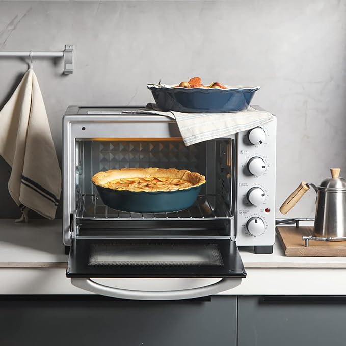 - Wave Edge Design - Round bakeware with ruffle design, a variety of colors for you to choose, decorate your kitchen. The wide groove edge give your dough a lotus leaf shape. After making the pie, you can take a beautiful picture to share with friends and enjoy the food with your family.