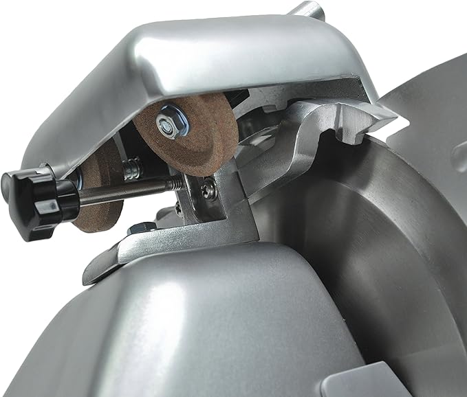 - Built-in Sharpener for Razor-Sharp Precision: Equipped with a built-in dual whetstone sharpener, the MS-6RS makes maintaining a razor-sharp blade effortless, ensuring top slicing performance over time. The integrated ring guard assembly adds an extra layer of safety, making this slicer easy and safe to use, even during heavy-duty operation.