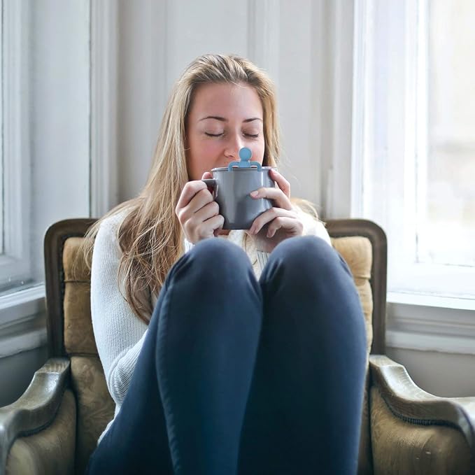 Leden Tea Infuser Cute Tea Strainer for Loose Tea Fine Mesh Stainless Steel Tea Ball Steeper & Diffuser with Silicone Lid for Tea Cup & Mug, with Cleaning Brush Blue