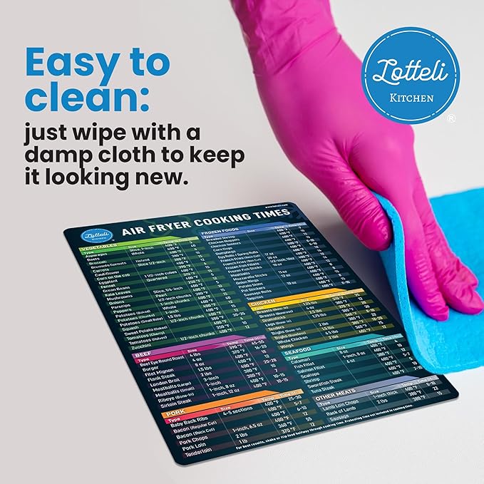 - PERFECT HOUSEWARMING GIFT: Presented in attractive packaging, our air fryer cheat sheet magnet is a thoughtful gift for anyone who loves to cook. Perfect for anyone, Lotteli makes cooking easier and more enjoyable for both experienced chefs and beginners alike.