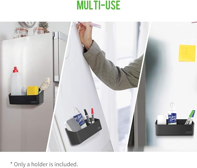 loukin Magnetic and Adhesive Marker Holder, Dry Erase Accessory Tray, Magnetic Storage Organizer for Whiteboard, Glass or Refrigerators (Black)