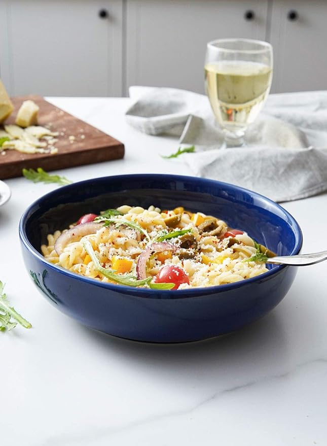 - Sturdy, Healthy Porcelain:Made from porcelain fired at high temperatures, these pasta bowls do not absorb odors or flavors and resist moisture absorption. Lead free and chip resistant, making them healthy. Can be used in microwave oven, oven, dishwasher, refrigerator, etc. Good for everyday use, the pasta serving bowl also add character to any table, thanks to their elegant look