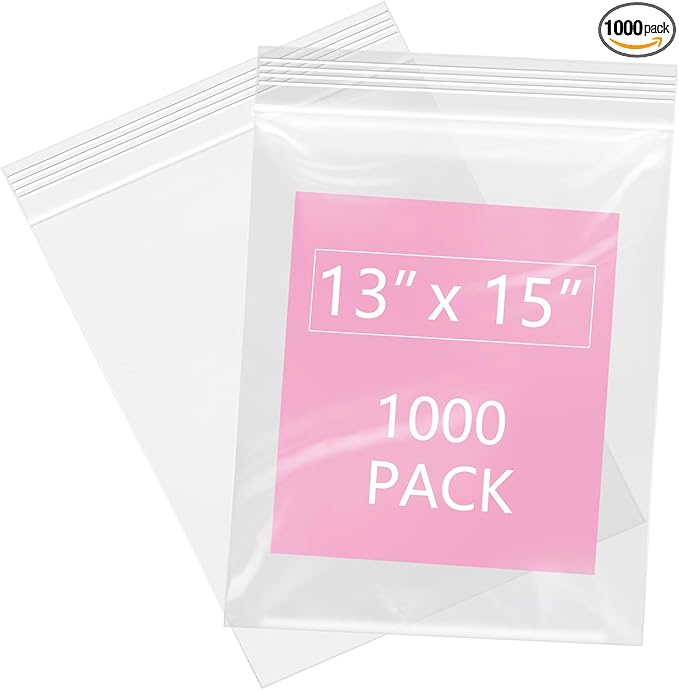 - [Specifications] -1000 Count 13" x 15" Usable Dimension (excludes the zipper), 2.0 Mil Thickness Reclosable Zip Poly Bags.We have various sizes for you to choose from.