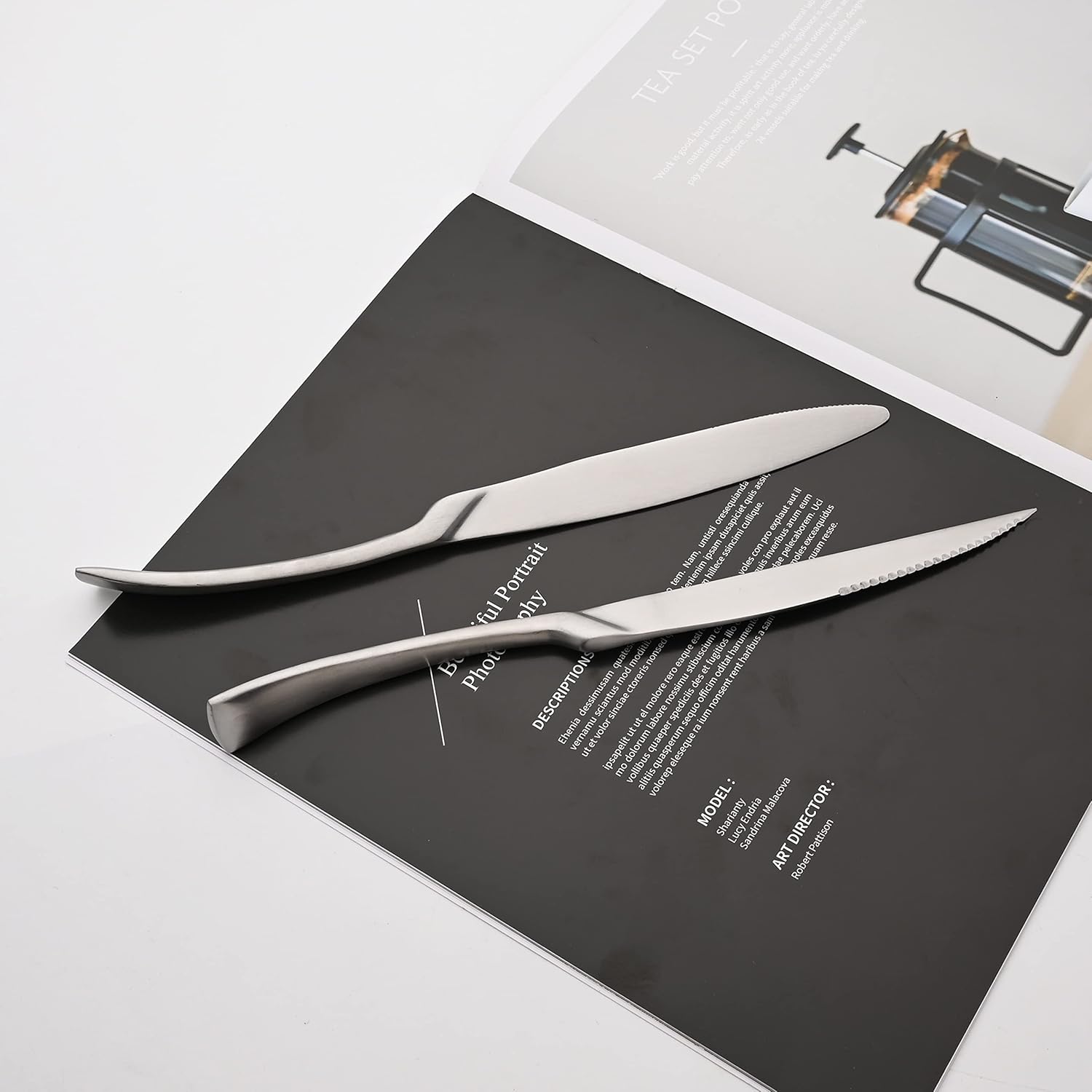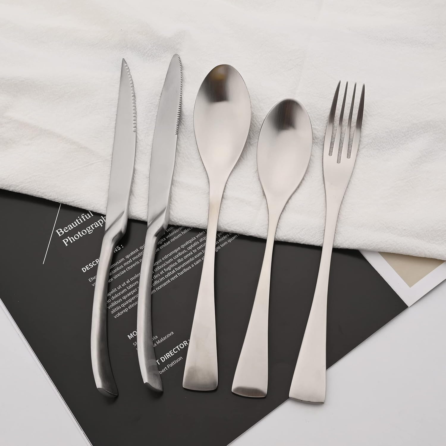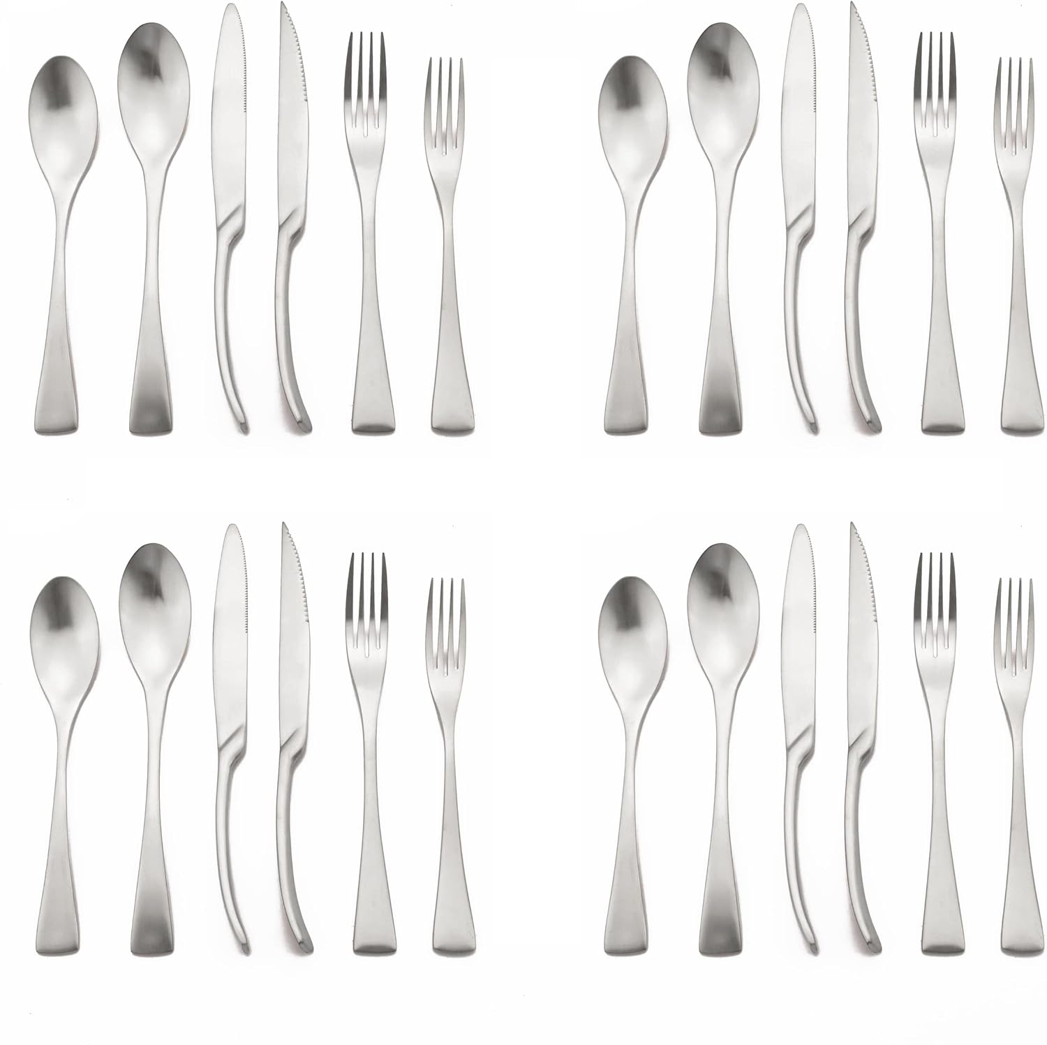 - MATTE FLATWARE SET 24 PIECES: Dinner Knife, Steak Knife, Dinner Spoon, Dinner Fork,Dessert Spoon, Salad Fork.