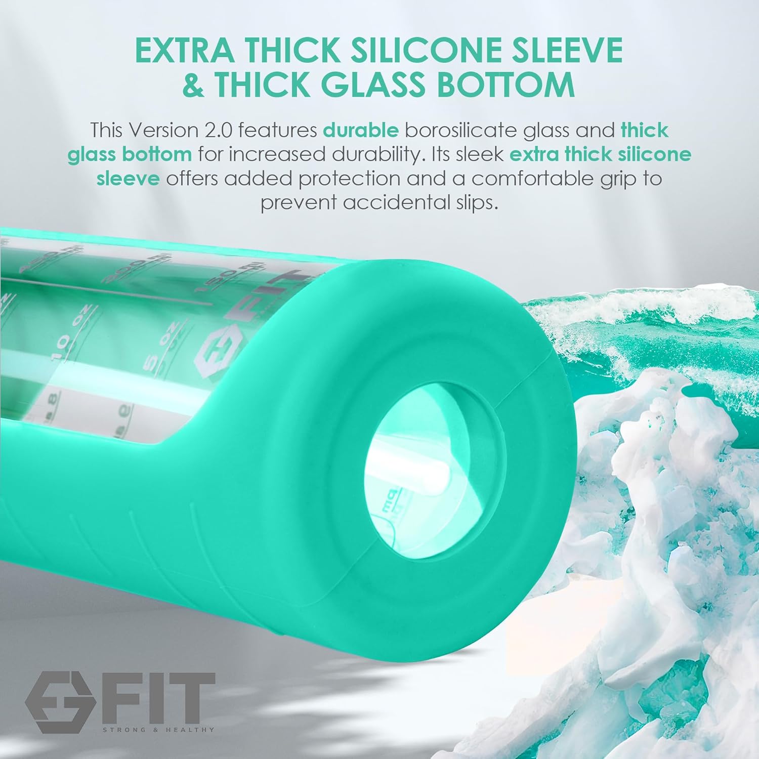 - Water Bottle and Cleaning Brush Set: Upgrade your hydration routine with our 32 oz Glass Water Bottle with Time Marker and Cleaning Brush Set; this version features an extra thick silicone sleeve for extra protection, insulation, and a secure grip; we've also upgraded one of the lids to a straw lid for sipping on the go; the 32-inch Water Bottle Brush is made from durable silicone material, which effectively removes dirt and residue; plus, it does not absorb unpleasant odors and stains