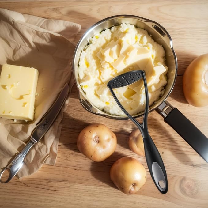 - SAFE MATERIAL: FDA compliant food grade European imported nylon material(degradable),it is nonstick and safe to your cooking pans, no scratch kitchen masher tool