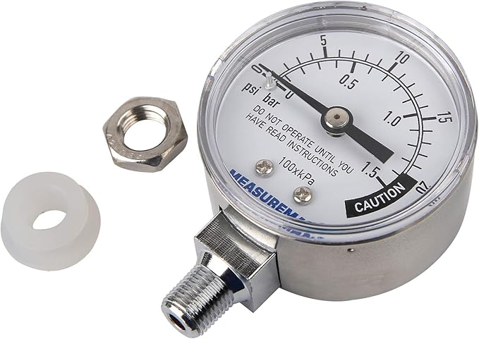 MEASUREMAN Stainless Steel Pressure Cooker Gauge, Pressure Canner Gauge, Steam Pressure Gauge, 2" Dial, Lower Mount, Including Hexagon Gasket and Nut