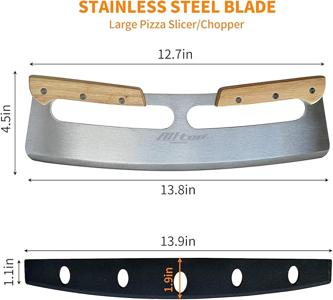 - Superior Quality: The blade of the pizza rocker cutter is made from durable stainless steel, ensuring long-lasting performance and resistance to rust.With two wooden handle to great grip.It includes a plastic protective sheath for safer storage.
