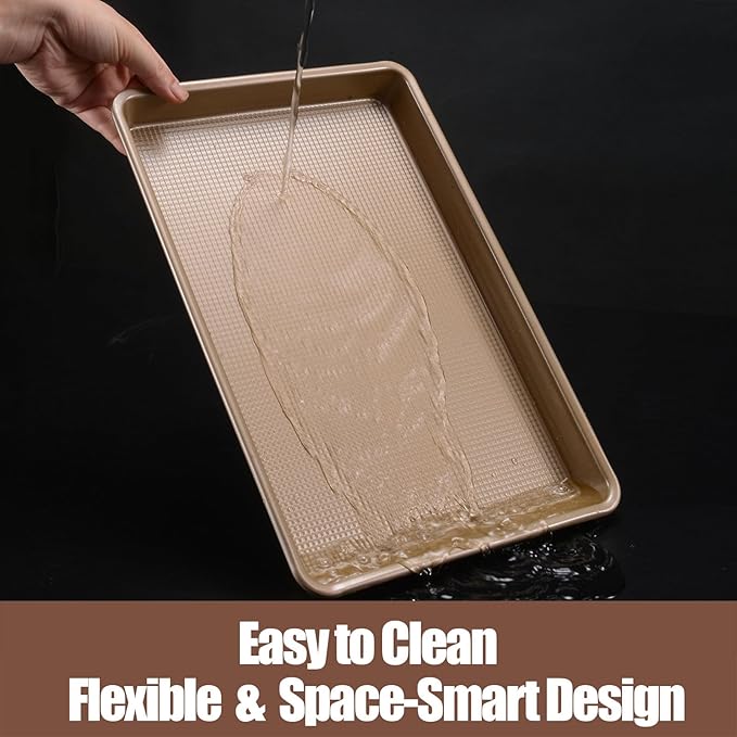 - Quick-Clean & Space-Smart Design : Smooth rolled edges prevent drips; Easy to clean in 15 seconds, hand-wash recommended to preserve coating. *Fits compact ovens (10x15โ) โ ideal for toaster/apartments/RV ovens!*