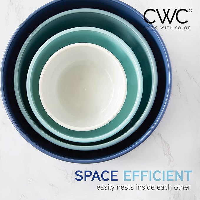 COOK WITH COLOR Prep Bowls with Lids- Wide and Deep Nesting Plastic Small Mixing Bowl Set with Lids, 8 Piece Set - Deep Bowls, Blue