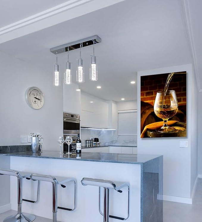 Looife Kitchen Wine Bottle Canvas Wall Art, 12x16 Inch Gallery Wrapped Whiskey Wine Glass Cup Picture Prints Wall Decor, Modern Art Deco for Dining Room and Bar Wall Decoration