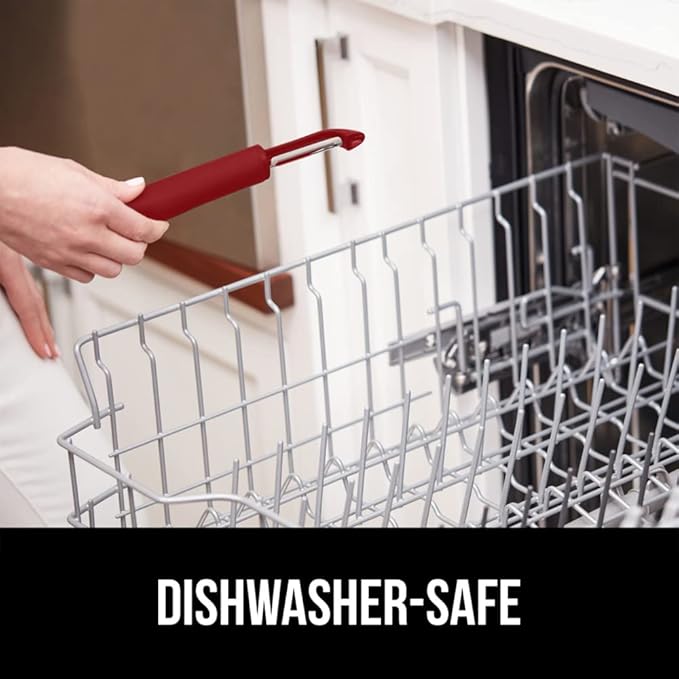GORILLA GRIP Patented BPA-Free Sharp Stainless Steel Swivel Vegetable Peeler, Comfortable Handle Potato Peelers, Smooth Peeling, Peel Carrots Apple, Includes Blade Cover, Kitchen Tool, Red