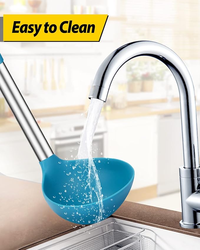 - More Safe and Healthy : Our kitchen ladle spoons are made of food-grade silicone, free of BPA;Even at high temperatures, there is no need to worry about melting or deforming;And the soft silicone head won't scratch the coating, it can better protect your pot